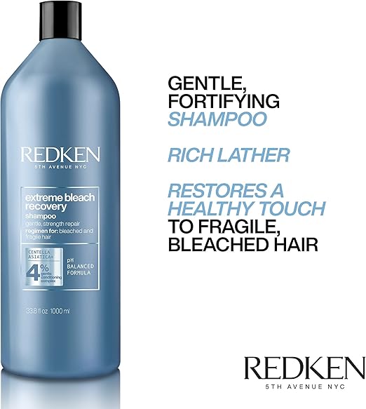 Redken Extreme Bleach Recovery Shampoo is a gentle yet strengthening cleanser specially designed for bleached and lightened hair. Formulated with Redken’s Cica-Cream complex, this nourishing shampoo helps repair weakened hair, reduce breakage, and restore softness after chemical services. It cleanses without stripping, leaving hair feeling stronger, smoother, and more manageable. Ideal for daily or frequent use, it supports healthier-looking hair while maintaining vibrant, lightened results.
